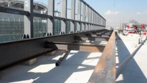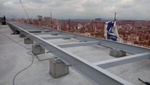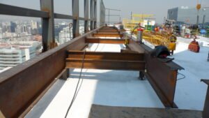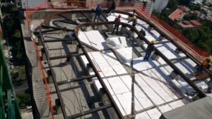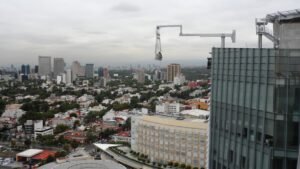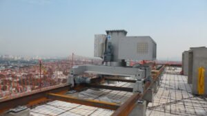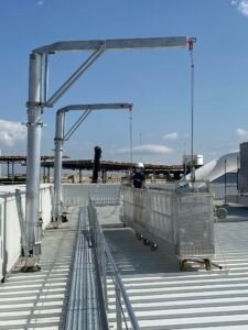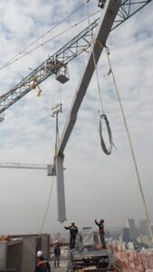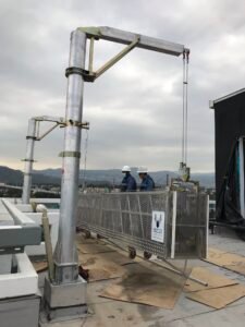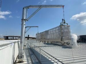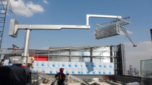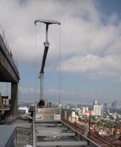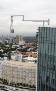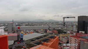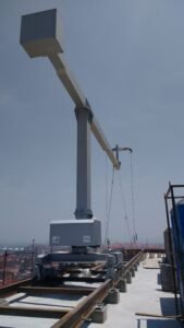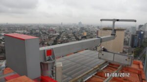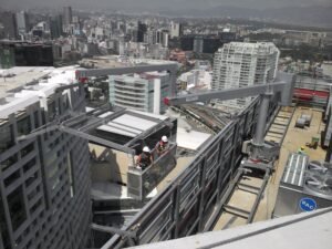 La torre requiere un sistema para la instalación y el eventual reemplazo de transformadores eléctricos en la azotea. Se diseñó una pluma retráctil (se puede ocultar), con un trole para desplazar la carga al interior de la azotea.