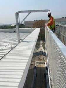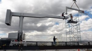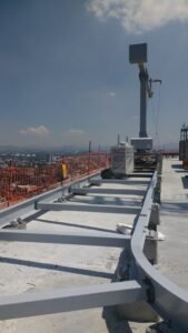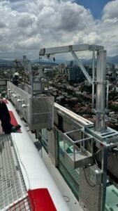 En el centro de bienestar en Monterrey se instaló un sistema de mástiles portátiles dávits y una plataforma motorizada modular de longitud variable, que puede alcanzar hasta 9 metros de longitud.